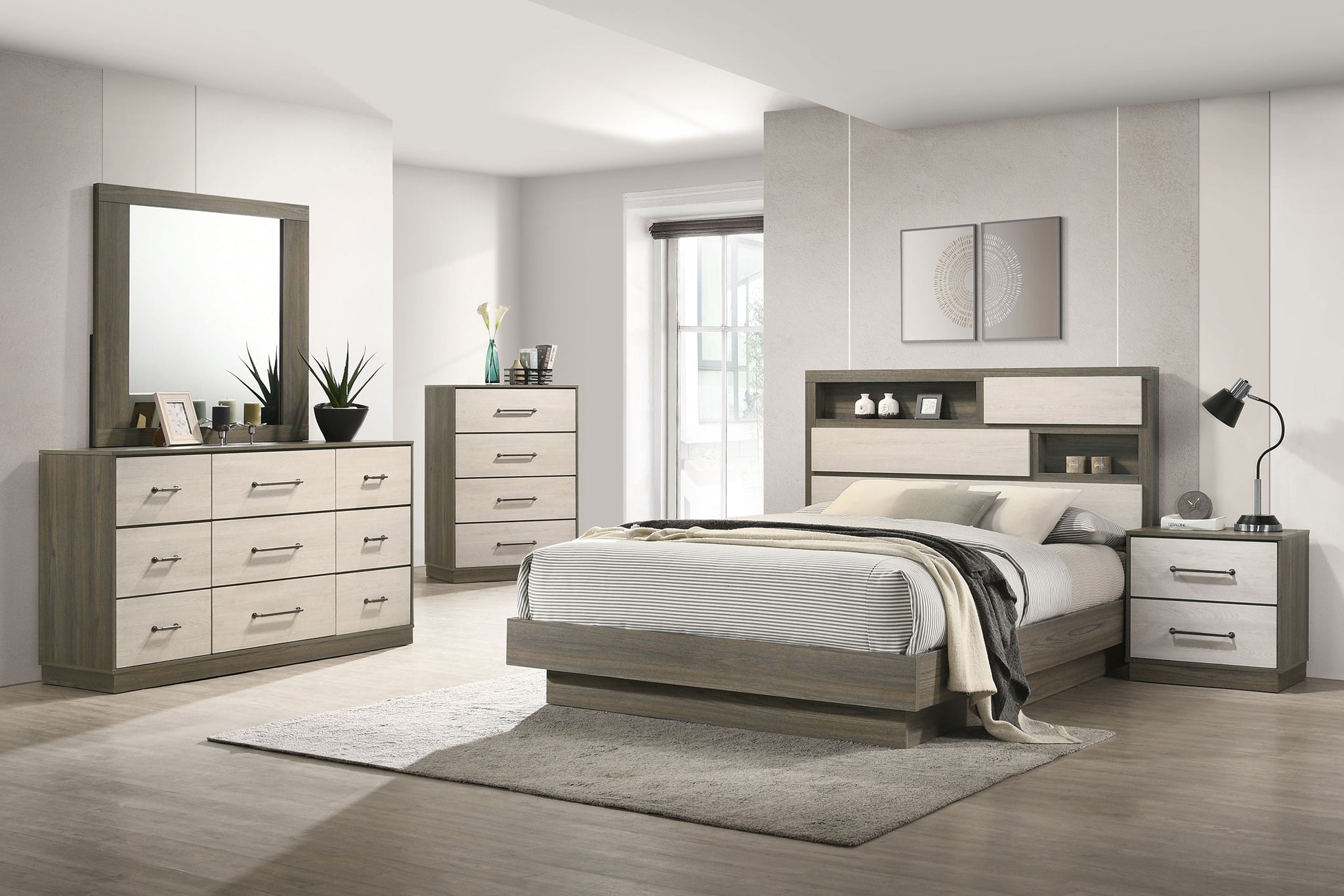 Discover contemporary elegance and smart design with this queen bed, part of a sophisticated bedroom collection. The bed features a stylish bookcase headboard with a hidden compartment, perfect for storing valuables or keeping bedtime essentials within reach. Crafted from durable melamine with a modern two-tone finish, this bed exudes both charm and practicality. Designed for lasting support, it offers a sturdy foundation for your mattress. Transform your bedroom into a haven of style and functionality with this innovative and elegant bed. Key Features: • Queen bed with a modern two-tone melamine design • Bookcase headboard with a secret compartment for discreet storage • Durable construction using melamine, particle board, and MDF for lasting quality • Sturdy frame construction ensures long-lasting support and durability • Contemporary design adds a touch of sophistication to any bedroom decor