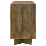 Enhance your dining room with a modern flair using our eco-friendly mango wood dining server. This server showcases a captivating chevron pattern on the door front, adding a touch of character and style to your space. With two adjustable shelves, it provides ample storage for your dining essentials, allowing you to organize and display items with ease. Key Features: • Enhance your dining room with a modern flair using our eco-friendly mango wood dining server • This server showcases a captivating chevron pattern on the door front, adding a touch of character and style to your space • Two adjustable shelves provide ample storage for your dining essentials, allowing you to organize and display items with ease • The mango wood construction is durable and eco-friendly, making it a great choice for any home • The sleek design and modern finish make this server a great addition to any dining room