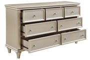 View full detailsCelandine Collection by Homelegance Silver finish Made of manmade wood 7 Drawers Dovetail drawers Embossed drawer front panel Ball bearing glides ...