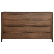 Introduce abundant storage and plenty of style to your bedroom with this transitional eight-drawer dresser. It delivers plenty of easy organization for clothing and accessories with drawers that include cedar lining for protection and felt lining in its top two. A walnut veneer finish is warm and refined, perfect for an approachable but elegant ambiance in your bedroom. The dresser features gently curved fingertip pulls that add dimension and depth to the front of the case. A wide top provides ample space for decor and personal effects, perfect for a framed photo, jewelry box or a vase of fresh flowers. Key Features: • Enhance your bedroom with the handsome profile and storage of a transitional eight-drawer dresser • Dresser features rounded corners and gently curved fingertip pulls for easy operation • Walnut wood veneer lends warmth and creates a touch of texture with natural grain patterns • Top drawers are complete with dark brown felt lining, offering easy protection for delicate items • Drawers feature cedar lining that helps to protect against pests and provides excellent quality