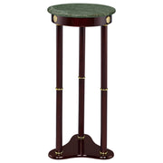Add a refined touch to any room with this elegant accent table, ideal as a decorative stand or pedestal. A polished green marble top introduces organic texture and visual contrast, while the deep brown wood base provides classic warmth. Gold-tone accents elevate the traditional aesthetic, making it a charming fit for formal living spaces, hallways, or entryways. Built with solid and engineered wood, this compact piece blends timeless design with long-lasting quality. Key Features: • Featuring a genuine green marble top for a luxurious natural accent • Durable solid rubberwood and engineered wood frame ensures lasting quality and strength • Classic round design with gold accents offers a timeless and sophisticated appeal • Sturdy tri-leg base provides reliable stability and support for various uses • Perfect as a plant stand or accent table, blending style and practicality effortlessly • Finished in a rich brown tone to enhance its classic and versatile aesthetic
