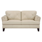 With subtle inspiration from modern European design, the contemporary style of the Thierry Collection pairs understated elegance with defining lines resulting in a sophisticated look for your living room. The cream hue of the love seat’s top grain leather covering – with split-grain leather match – is a neutral decorative selection for your space. Geometric stitching accents the seats of the love seat, while the flare of the track arm completes the modern profile.