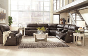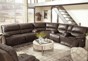 Life is so much better when you can enjoy the pleasure of real leather—at a price to put you at ease. That’s exactly what you get with this power reclining sectional. Thanks to real leather throughout the seating area, you've got a reclining sectional that feels like a million bucks but won’t break the bank. Tailored to those with an eye for contemporary design, this power reclining sectional is dressed to impress with an upscale matte finish, clean-lined divided back tufting, distinctive jumbo stitching, and chic pillow top armrests. Perhaps best of all: Easy View™ power adjustable headrests let you recline back and still have a primo view of the TV.