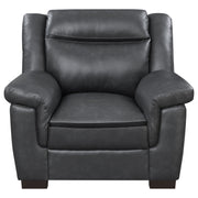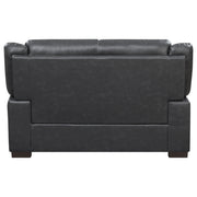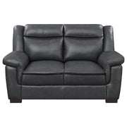 Designed for timeless appeal and modern comfort, the Arabella sofa set brings relaxed sophistication to any living space. Each piece features smooth grey leatherette upholstery with detailed stitching and thick foam cushioning for a plush, supportive feel. Wide padded arms and high pillow-top backs offer lasting comfort, while the clean silhouette enhances both contemporary and transitional interiors. Supported by dark brown block legs, the set delivers sturdy construction and refined style that’s perfect for daily lounging or entertaining guests._x005F_x000D_ Key Features: • Two-piece sofa set upholstered in smooth grey leatherette with detailed stitched accents • Soft cushioned seats and wide padded arms deliver inviting comfort for everyday use • High pillow-top backs provide exceptional head and lumbar support for extended lounging • Dark brown block-style legs lend contrast and modern visual balance to each piece • Durable wooden frame ensures long-lasting structure and reliable stability • Perfectly suited for modern, transitional, or small living spaces seeking refined comfort