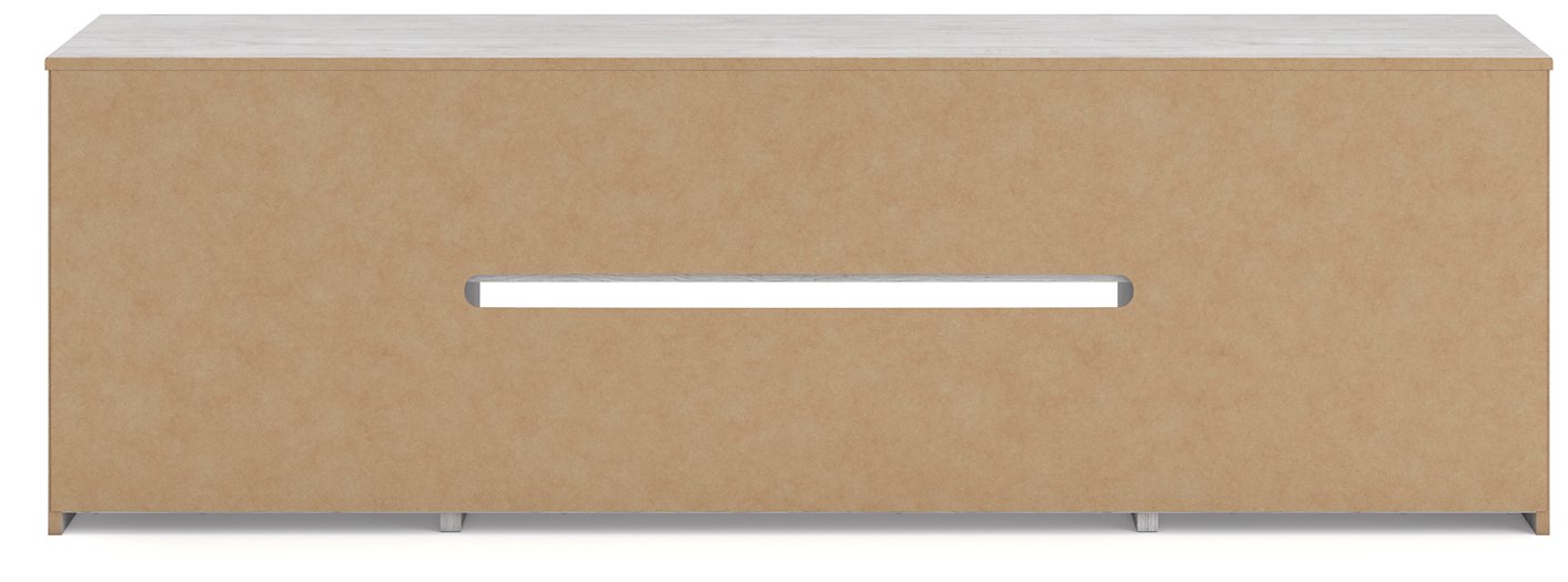 This TV stand embraces a classically charming aesthetic and repurposes it for modern living. Its light replicated wood grain appeals to your love of vintage character, while the chic chevron pattern is effortlessly on trend. And with hidden storage behind the doors, your media accessories stay tucked away in style.