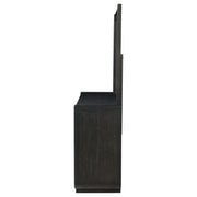 Grounded in grace and softened by design, this eight-drawer dresser and mirror set brings balance to the bedroom with understated elegance. Cloaked in a burnished black finish, the frame curves subtly at the edges for a sculptural feel. Spacious drawers open with quiet ease thanks to soft-closing glides, while black felt lining in the top drawers offers protection for delicate essentials. Above, a minimalist mirror completes the silhouette, reflecting form and light in quiet harmony. Key Features: • Eight-drawer dresser in burnished black with curved edges and minimalist structure • Top drawers lined in black felt to protect accessories and delicate items • Soft-closing ball bearing glides provide quiet, smooth drawer movement • English dovetail drawer joinery ensures lasting strength and clean craftsmanship • Dust panel construction keeps stored contents clean and well protected • Paired with matching mirror for a clean-lined, elevated bedroom silhouette
